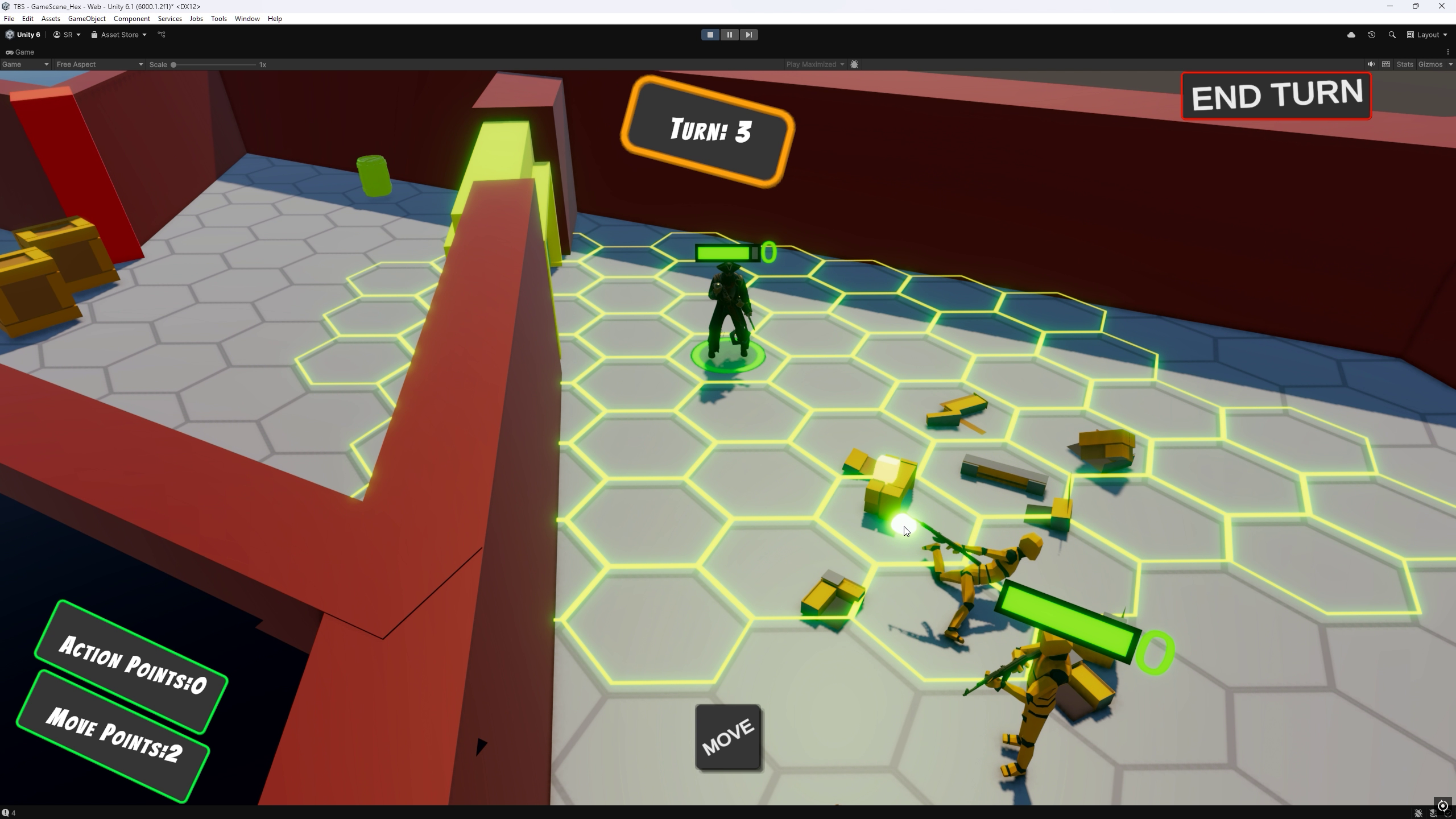 I made this playable prototype while completing the Unity Turn-Based Strategy Game: Intermediate C# Coding course. It’s a focused proof-of-concept showing how core TBS systems come together: grid-based movement, A* pathfinding, modular actions (move, shoot, grenade, melee, interact), an AP/Move Points with turn system, and enemy AI — all wrapped with animator-driven visuals, Cinemachine camera work, and small polish touches to make each action feel satisfying.